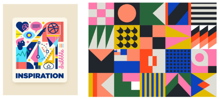 2021 will be the peak of this design trend. The idea of utilising individual shapes to create larger, more complex and unique ones accompanied by strong colours and outlines produces aesthetically striking and creative mixes.